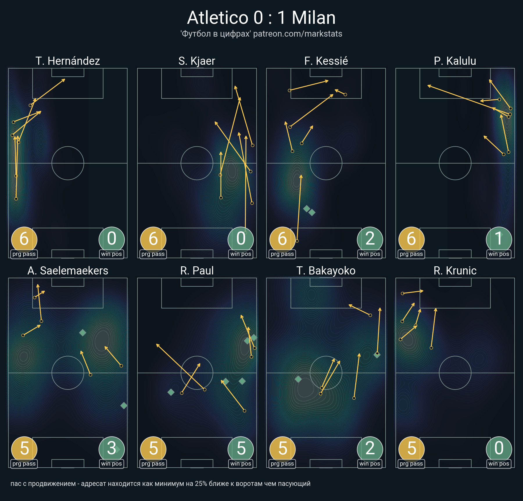 ▪ 58 успешных передач из 64 попыток (1 ассист, 2 под удар, 6 с продвижением, 5 на трети соперника)