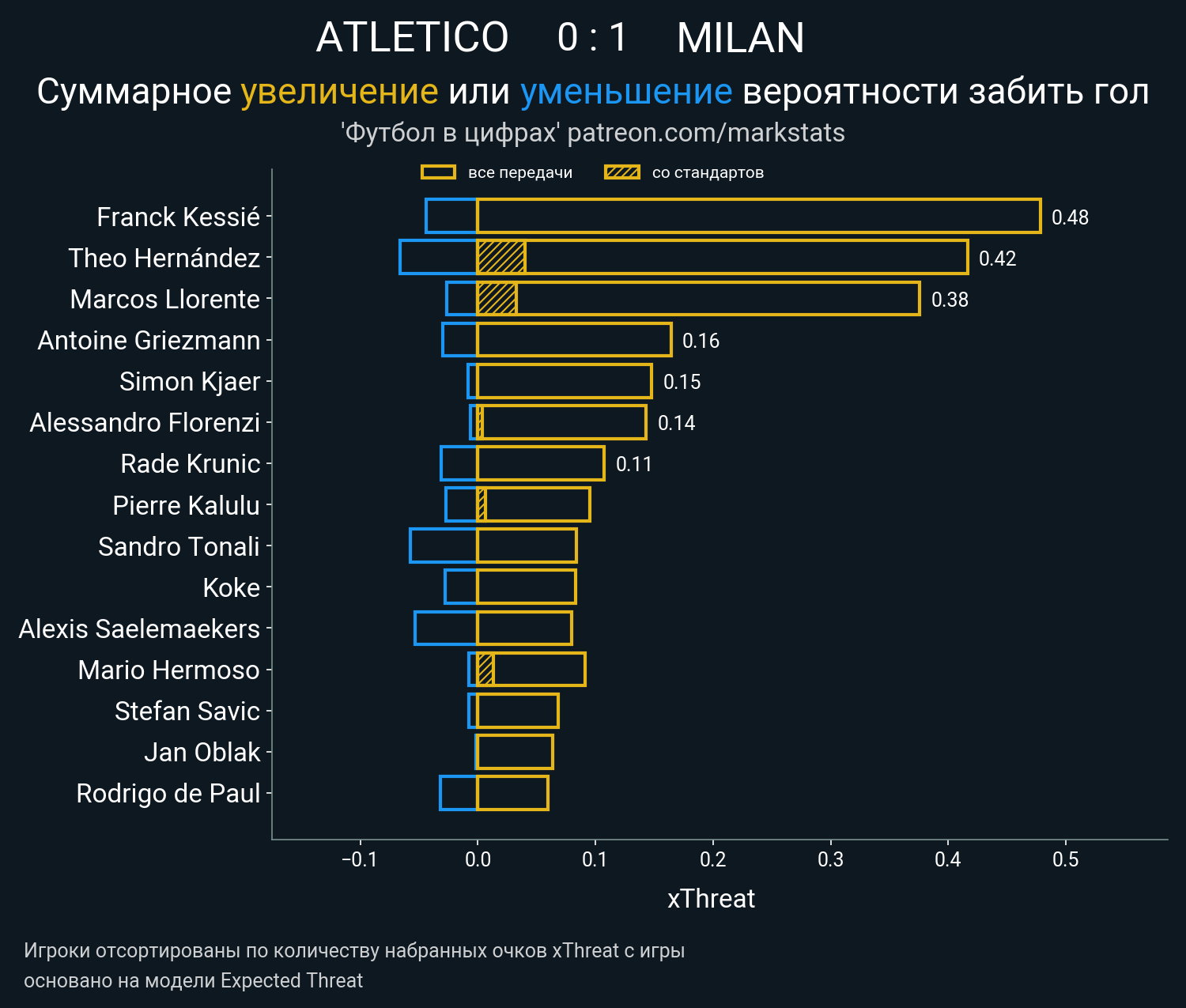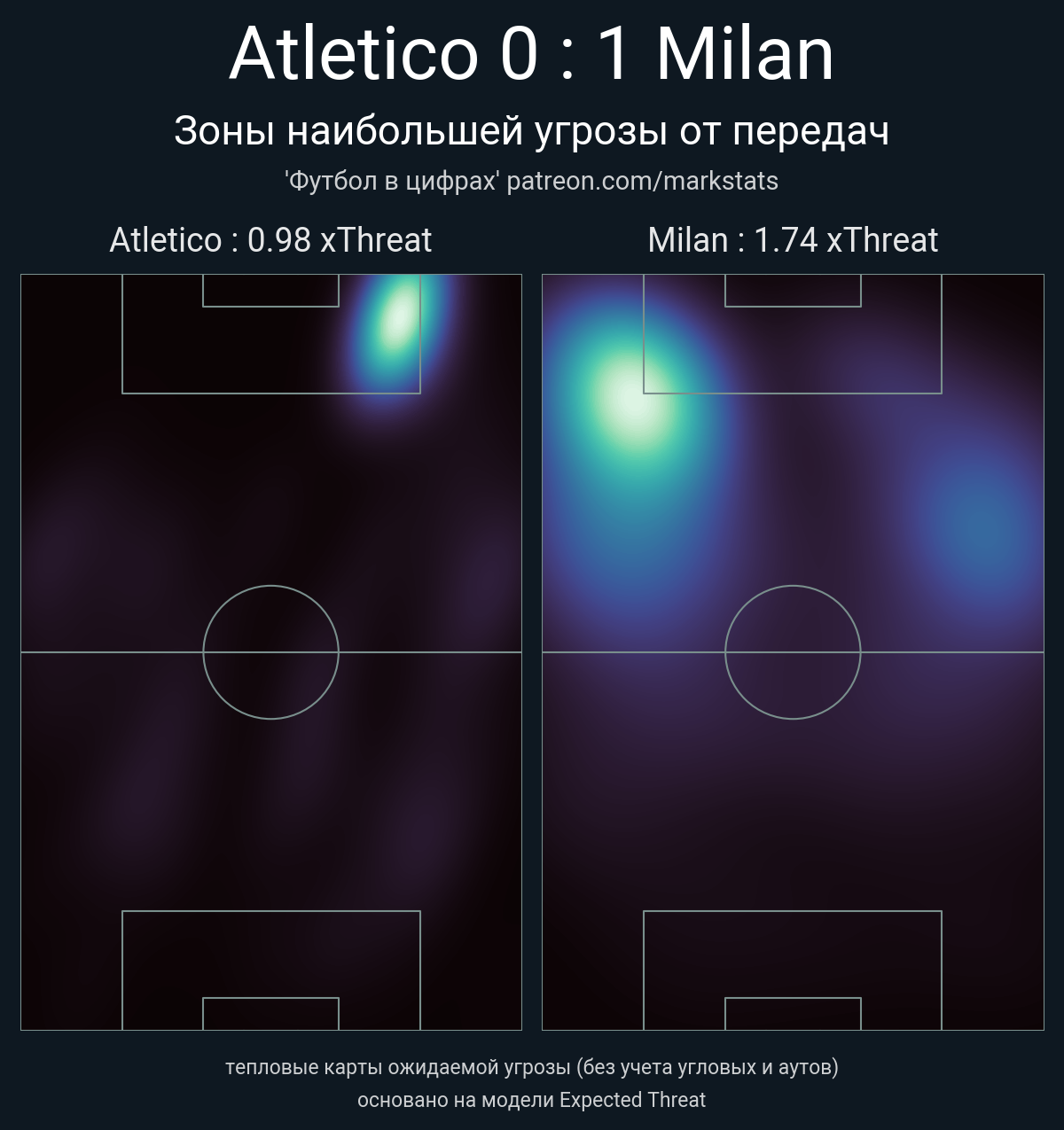 ▪ xThreat без учета угловых: 0.98 - 1.74