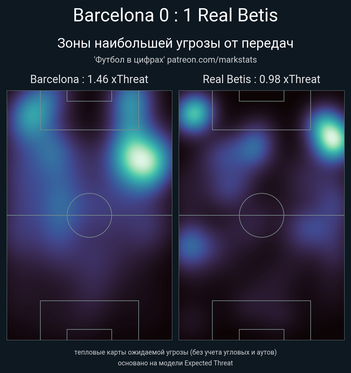 ▪ xThreat без учета угловых: 1.46 - 0.98