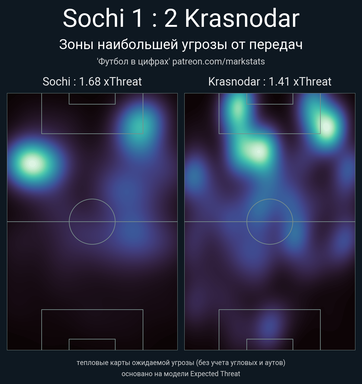▪ xThreat без учета угловых: 1.68 - 1.41