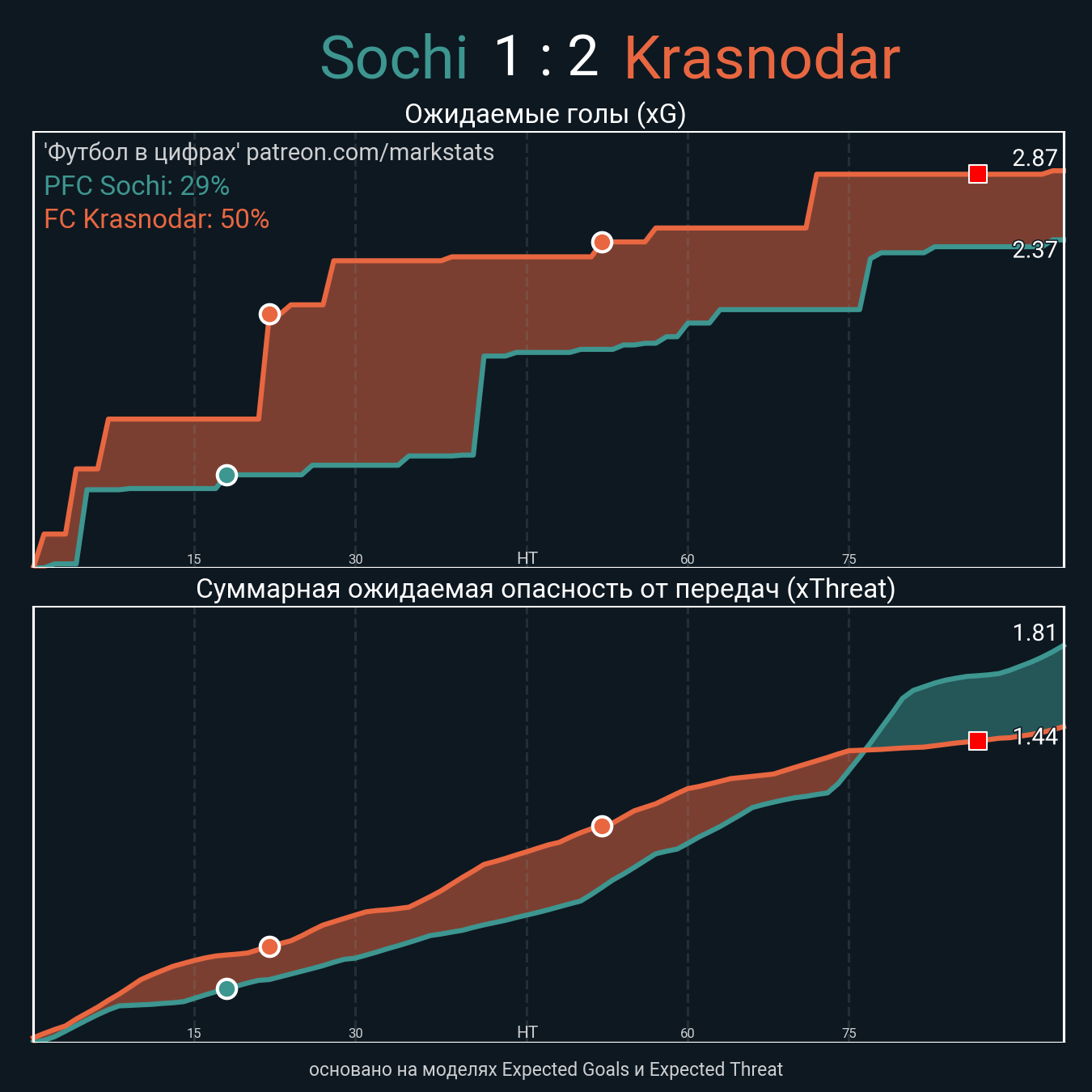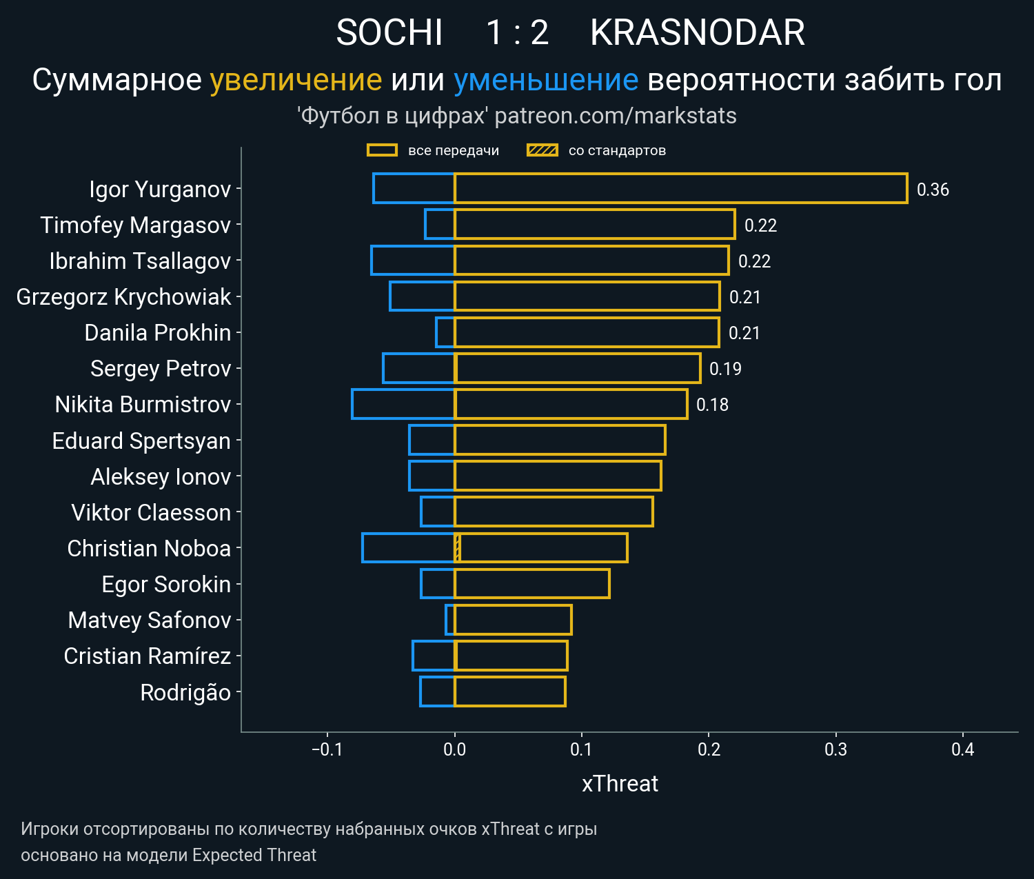 Очки xThreat с игры: