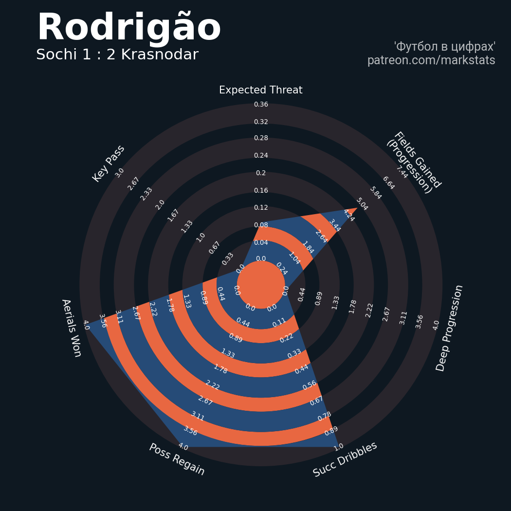 ▪ 45 успешных передач из 64 попыток (1 под удар, 7 с продвижением, 14 на трети соперника)