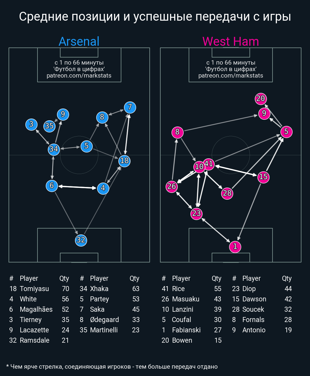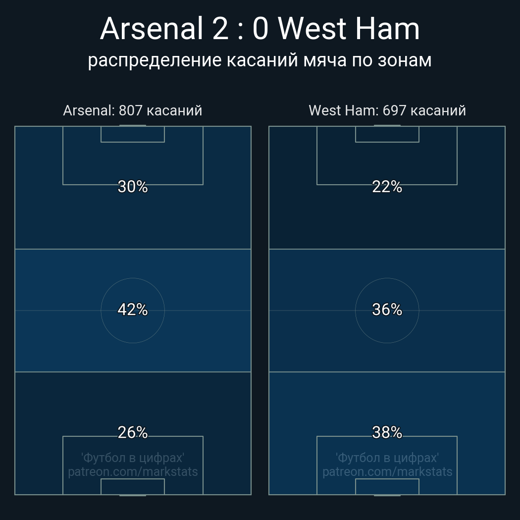 Футбол в цифрахСтатистика матча Arsenal - West Ham