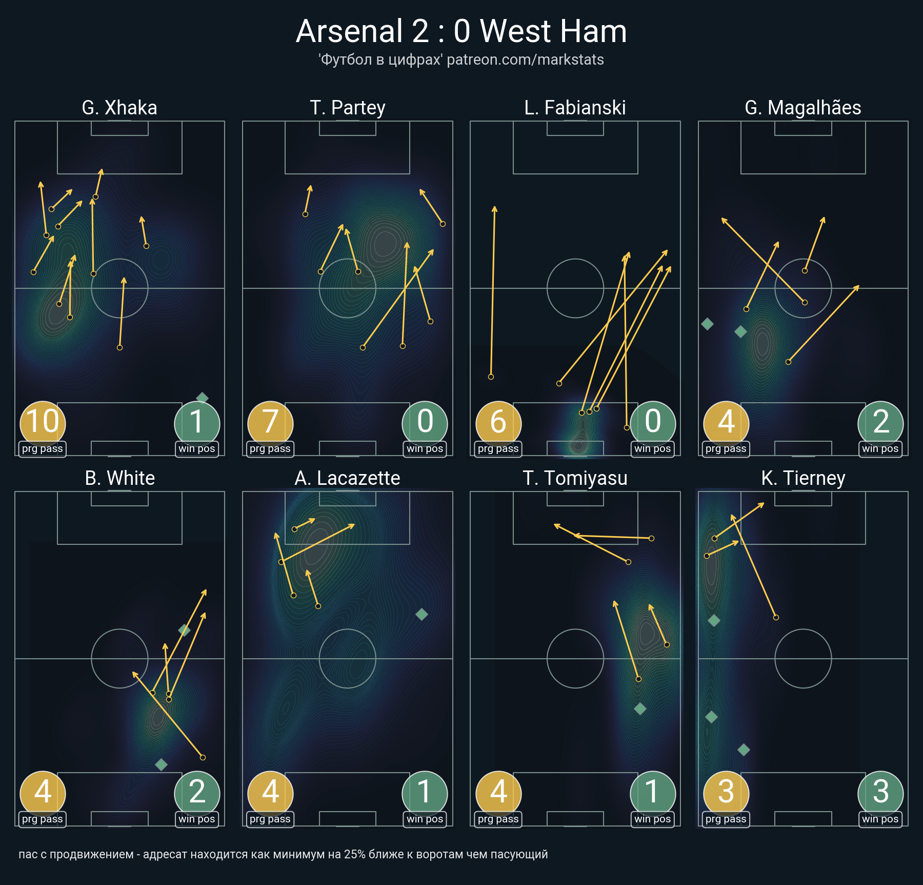 ▪ 21 успешных передач из 24 попыток (1 ассист, 2 под удар, 4 с продвижением, 10 на трети соперника)