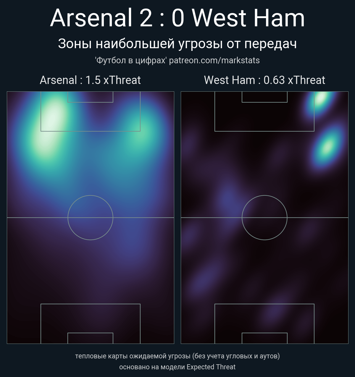 ▪ xThreat без учета угловых: 1.5 - 0.63