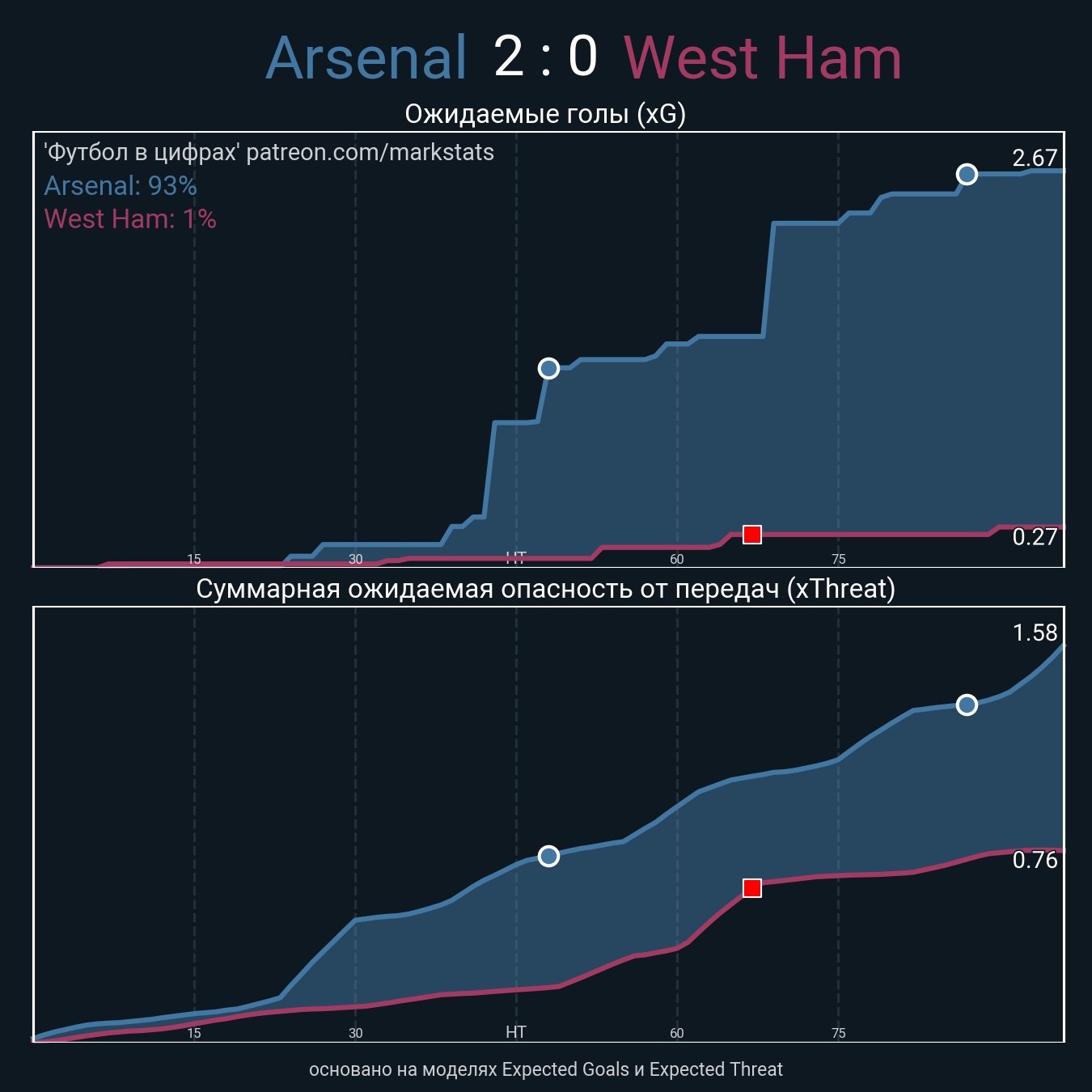 Очки xThreat с игры: