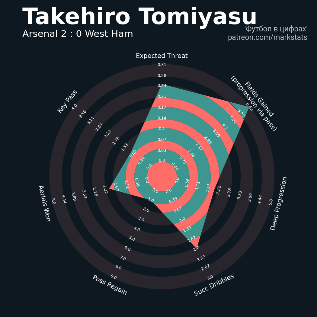 ▪ 36 успешных передач из 48 попыток (1 ассист, 4 под удар, 3 с продвижением, 20 на трети соперника)