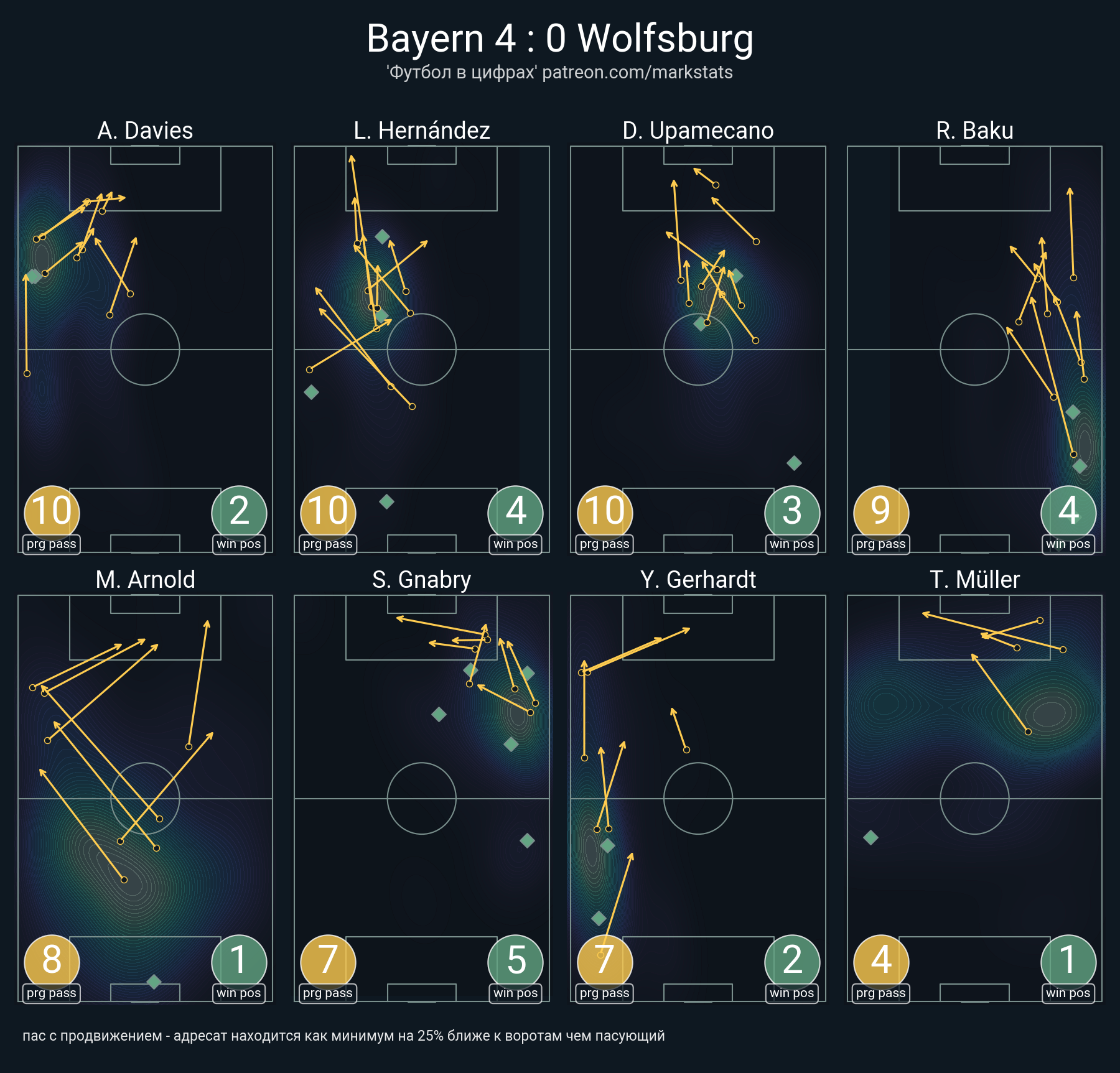 ▪ 43 успешных передач из 62 попыток (1 ассист, 2 под удар, 4 с продвижением, 24 на трети соперника)