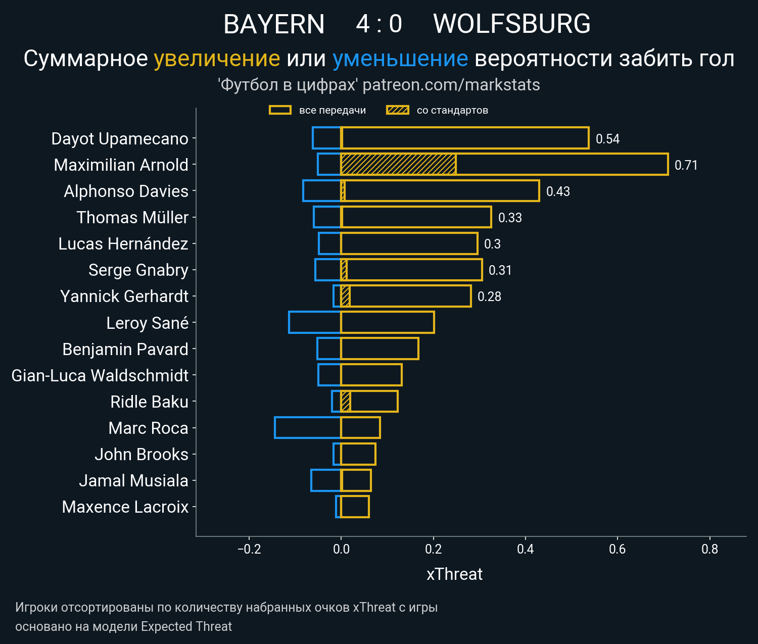 Очки xThreat с игры: