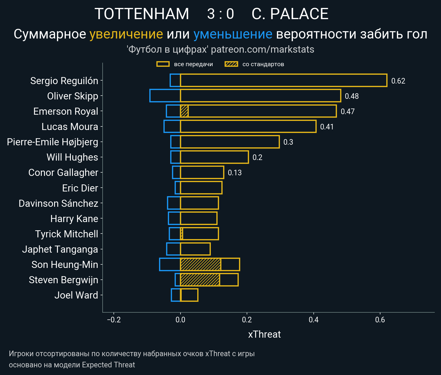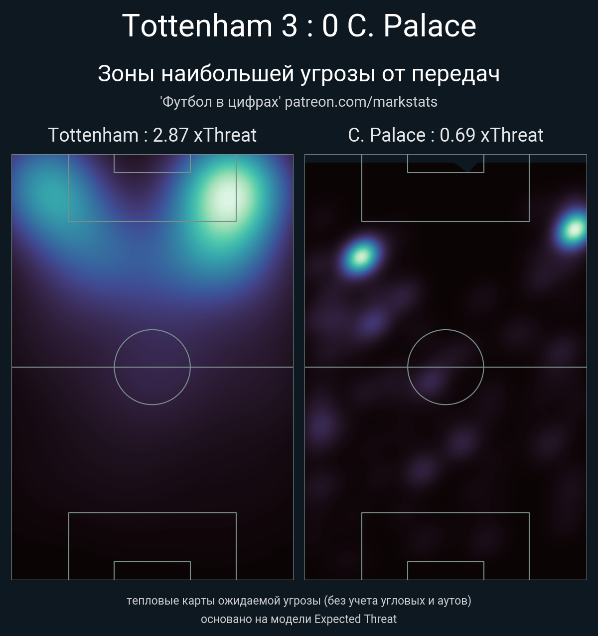 ▪ xThreat без учета угловых: 2.87 - 0.69