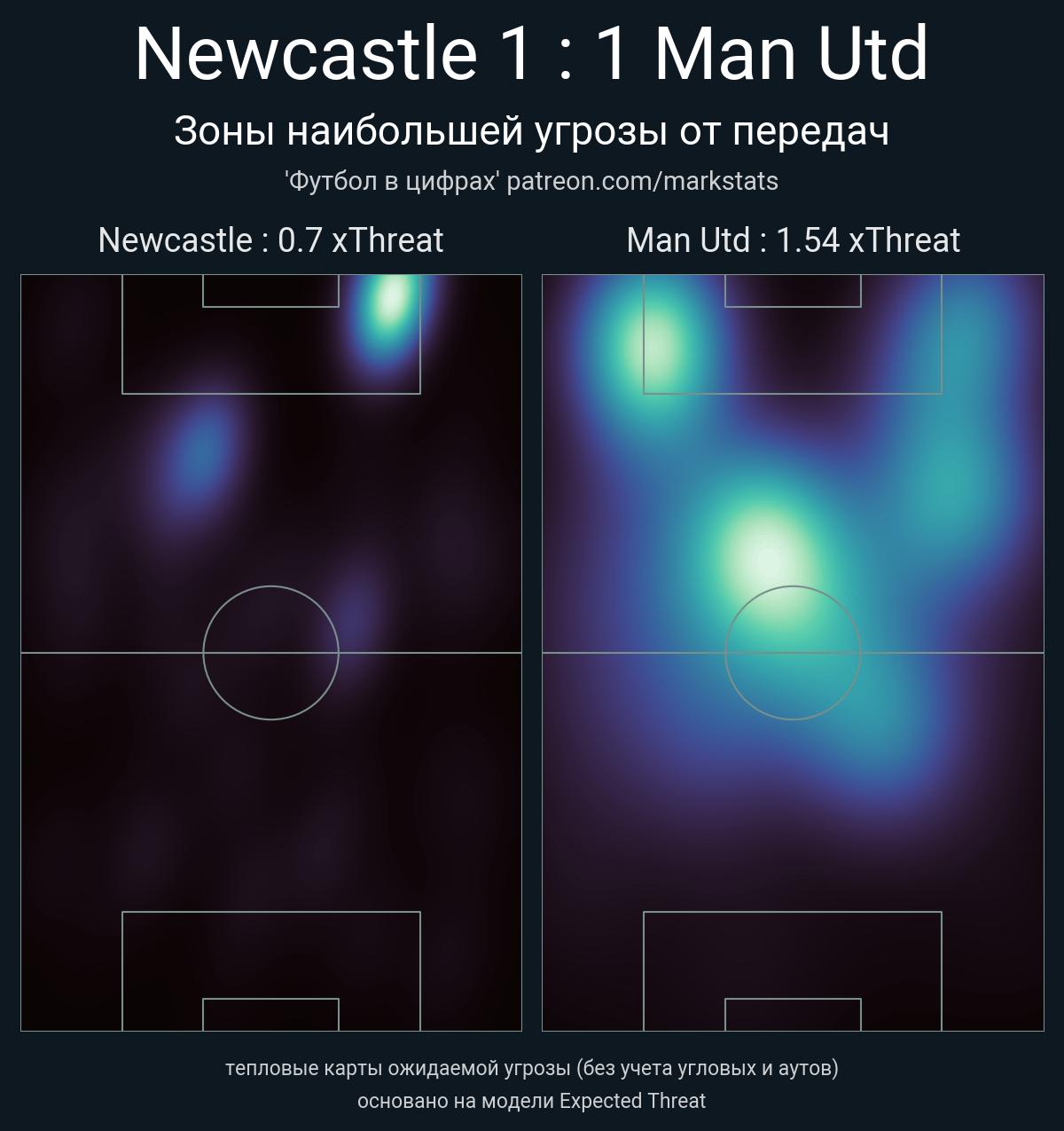 ▪ xThreat без учета угловых: 0.7 - 1.54