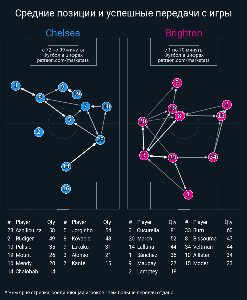 Футбол в цифрахСтатистика матча Chelsea vs. Brighton