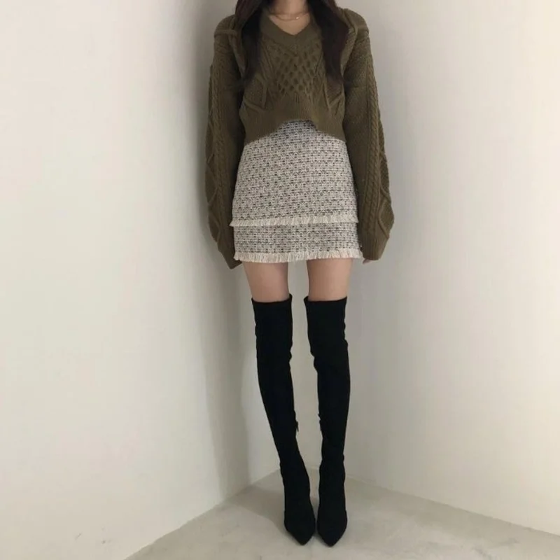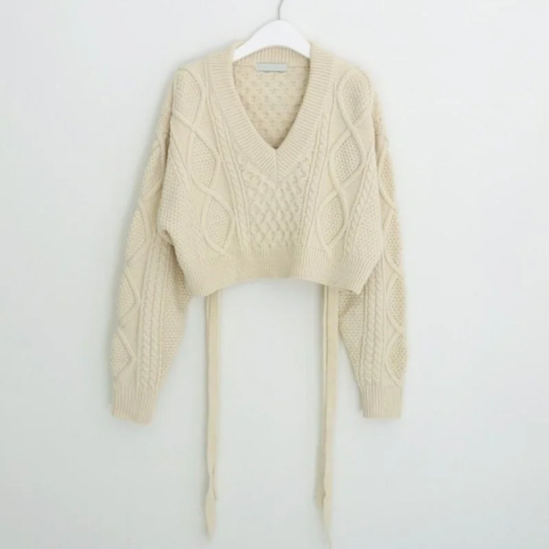«2021 Autumn Korean Version Irregular Design Sense Bow Tie Wide Loose Short Fashion Pullover Long-sleeved Sweater Women 2 Pieces» по лучшей цене на рынке! Всего за 11$ (1045рублей)
