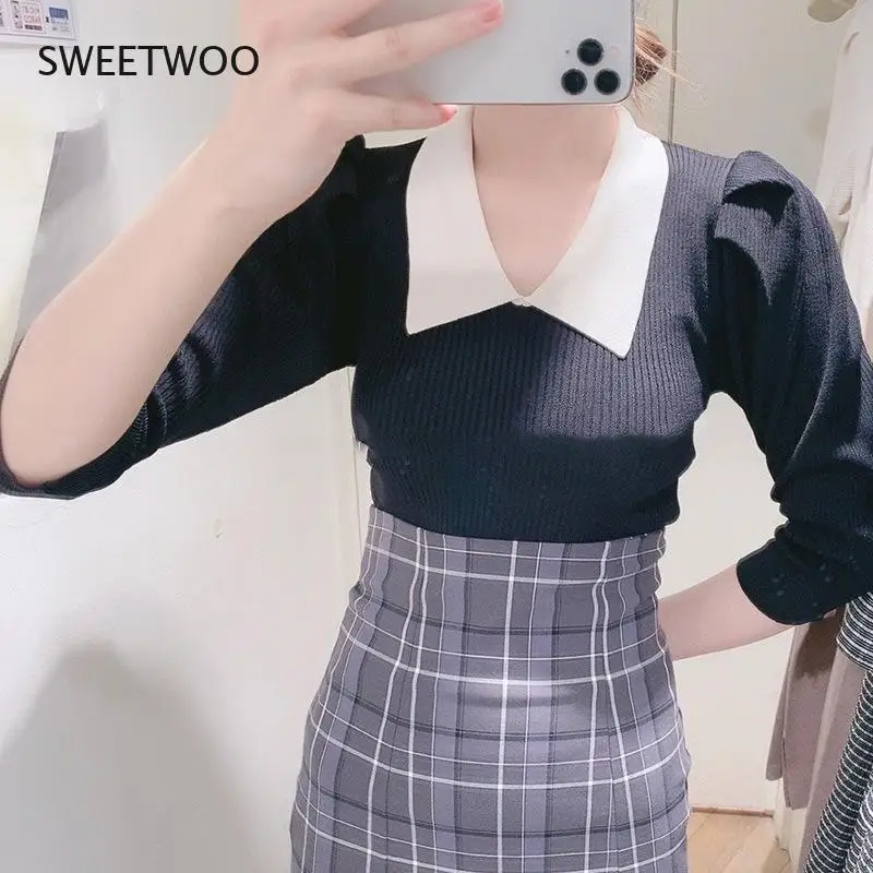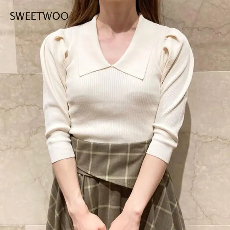 pmuhowWzLXДолго искали 2021 Autumn New Fashion Sweet Jumper Turn Down Collar Half Sleeve Slim Ribbing Knitted Pullover Japanes Women Sweaters, но не могли найти? Предоставляем вашему вниманию 2021 Autumn New Fashion Sweet Jumper Turn Down Collar Half Sleeve Slim Ribbing Knitted Pullover Japanes Women Sweaters по лучшей цене на рынке!
