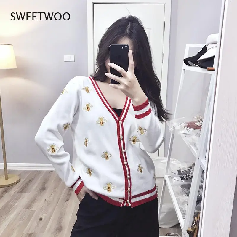 IuIzuvqkOДолго искали 2021 High Quality Fashion Designer Bee Embroidery Cardigan Long Sleeve Single Breasted Contrast Color Button Knitted Sweaters, но не могли найти? Предоставляем вашему вниманию 2021 High Quality Fashion Designer Bee Embroidery Cardigan Long Sleeve Single Breasted Contrast Color Button Knitted Sweaters по лучшей цене на рынке!