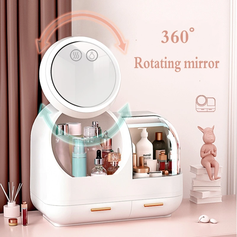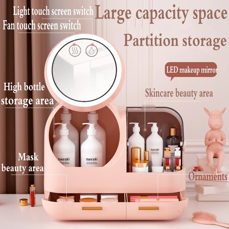 TeMPlGkrRHere you can buy 2021 New Cosmetic Storage Box LED light Internal Fan Makeup box Desktop Skin Care Product Storage Rack Organizer Cosmetic Case with free delivery to your post office.