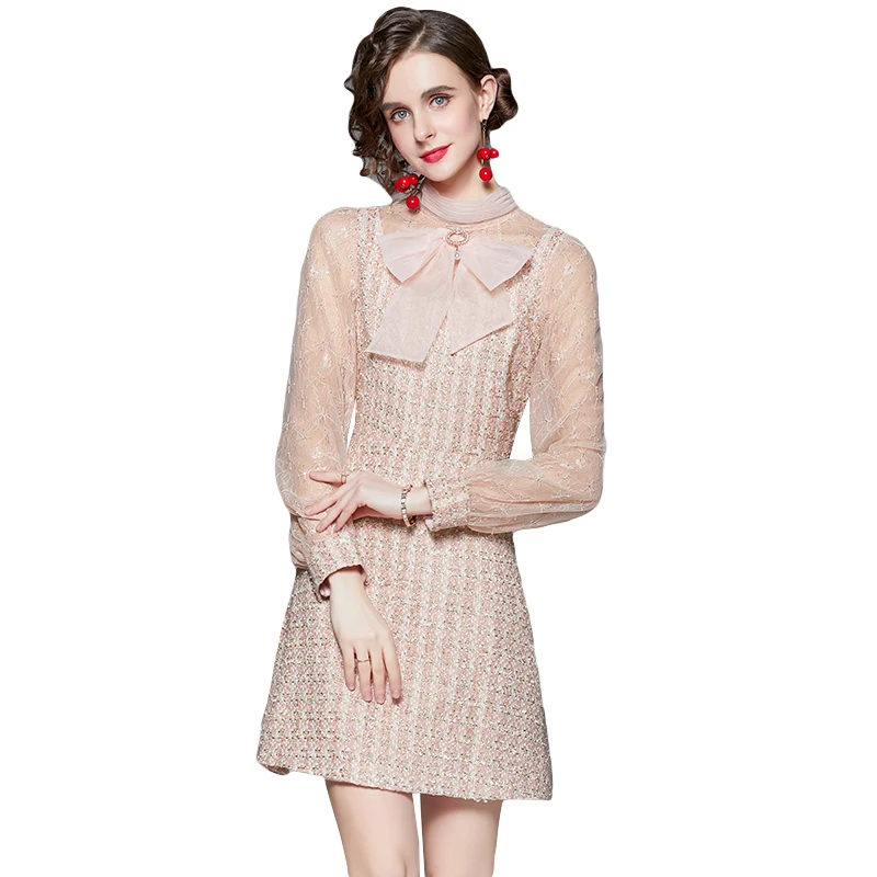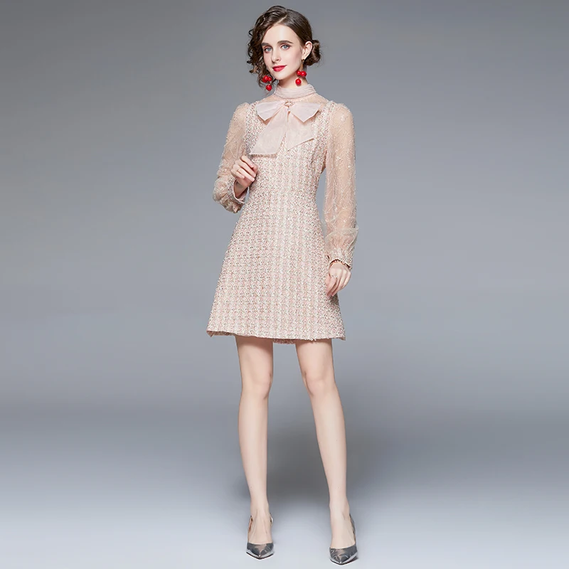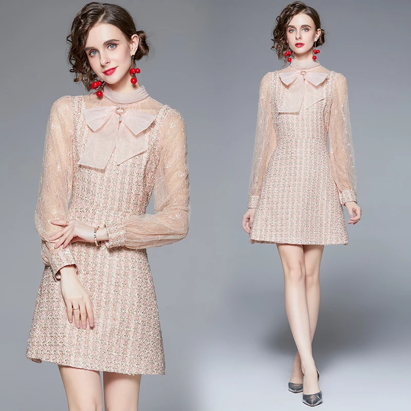 «2021 Runway Designer Autumn Tweed Dress Women's Stand-up collar Mesh Sequins Embroidered Splicing Short Dress Vestdios» по лучшей цене на рынке! Всего за 31$ (2945рублей)