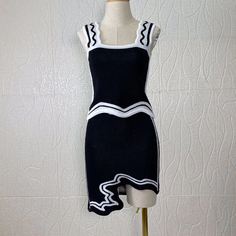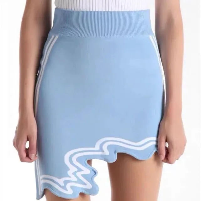 "2021 Spring Women's Customized Asymmetric Irregular Hem Mini Skirt Slim High Waist Elastic Knitted Wave Striped Skirt Sets" * Buy Now Just For 40$