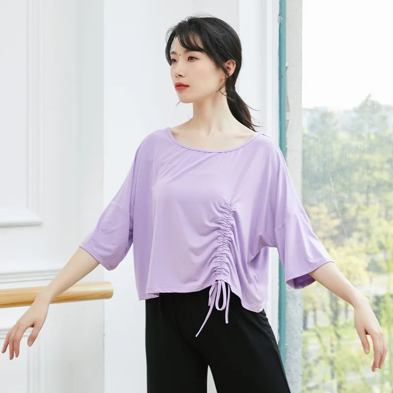 "2021 Women Spring Summer Mid Sleeve Latin Dance Woman Modal Training Shirt Female Dancewear Modern Dancing Elegant Practice Top" * Buy Now Just For 15$