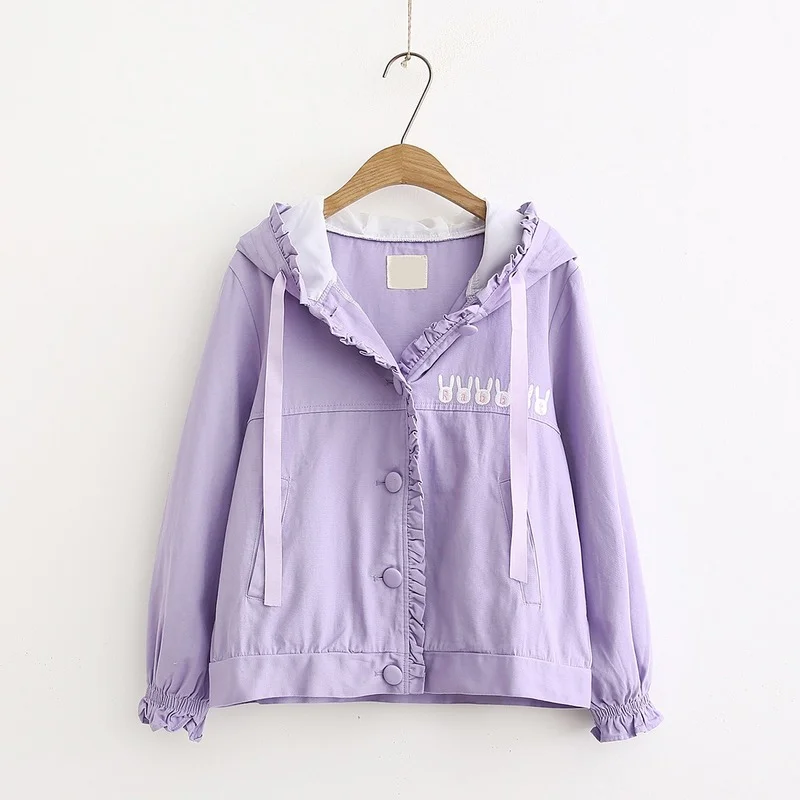 HILcpIimhFHere you can buy 2021 Women's Fall Winter Basic Jackets Ladies Japanese Sweet Rabbit Ears Embroidery Single Breasted Cute Jacket Pink Outerwear with free delivery to your post office.