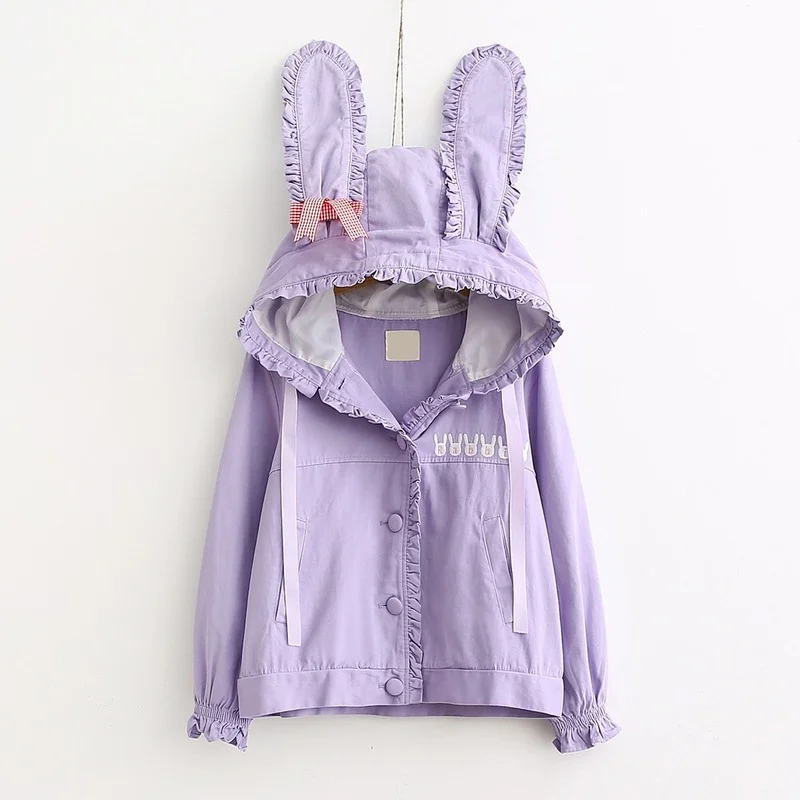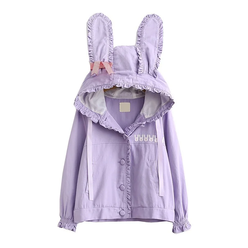 "2021 Women's Fall Winter Basic Jackets Ladies Japanese Sweet Rabbit Ears Embroidery Single Breasted Cute Jacket Pink Outerwear" * Buy Now With Free Shipping Just For $22