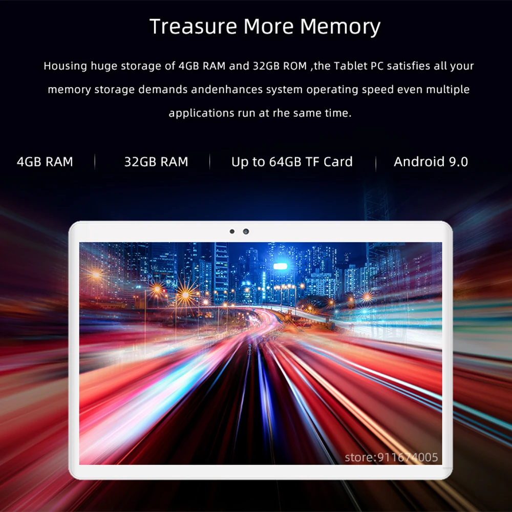 «2021 новый супер 2.5D Закаленное стекло 10 дюймов 4G LTE планшетный ПК Octa Core 4 Гб RAM 32 ГБ ROM 1280x80 0 IPS 5.0MP WiFi Bluetooth» по лучшей цене на рынке! Всего за 109$ (10355рублей)