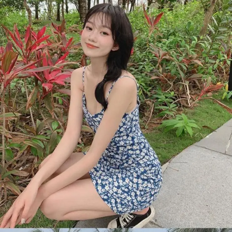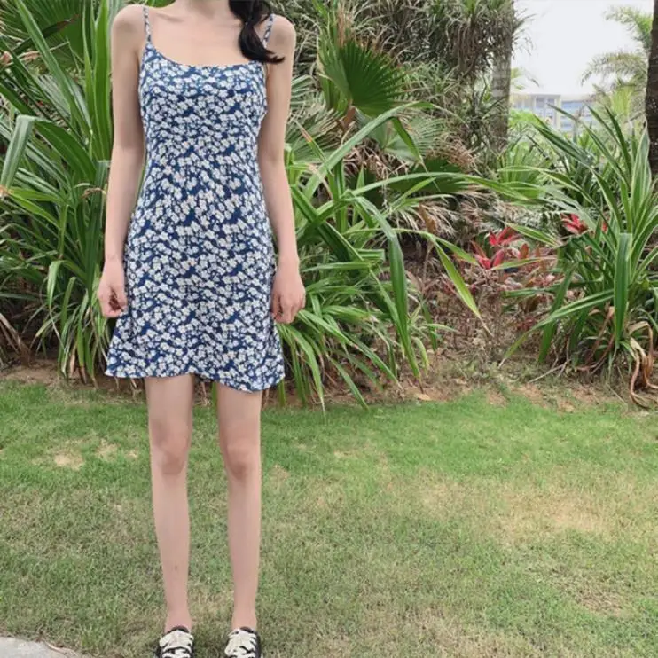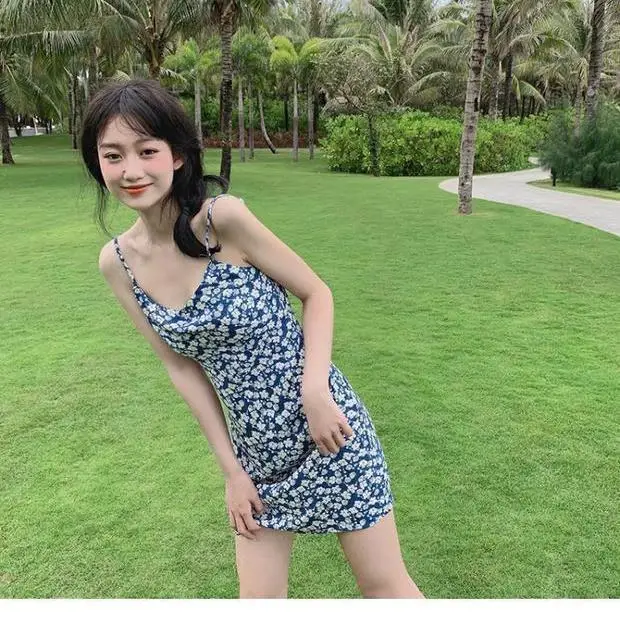 «2021 summer floral suspender dress women's small French summer Sexy Blue slim temperament short skirt» по лучшей цене на рынке! Всего за 19$ (1805рублей)