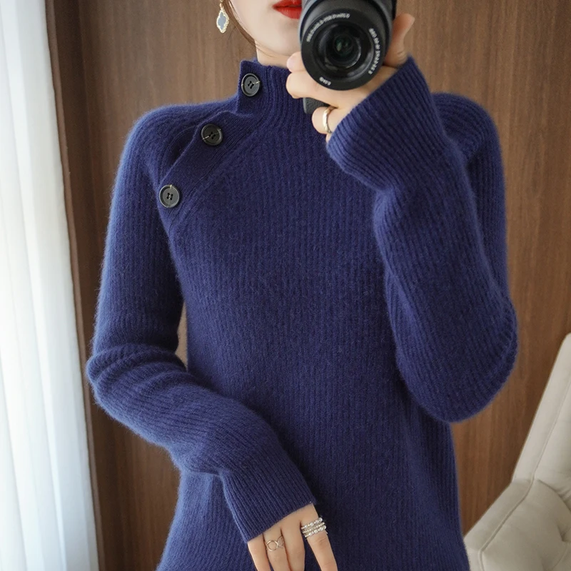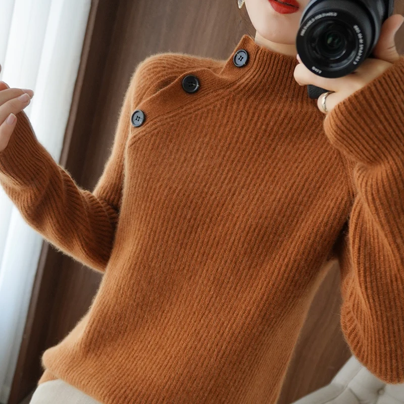 nSGPEZwAUTДолго искали 2021Autumn/Winter Cashmere Sweater Series Half Turtleneck Sweater Female Button Loose Pullover 100% Pure Wool Knitted Base Shirt, но не могли найти? Предоставляем вашему вниманию 2021Autumn/Winter Cashmere Sweater Series Half Turtleneck Sweater Female Button Loose Pullover 100% Pure Wool Knitted Base Shirt по лучшей цене на рынке!