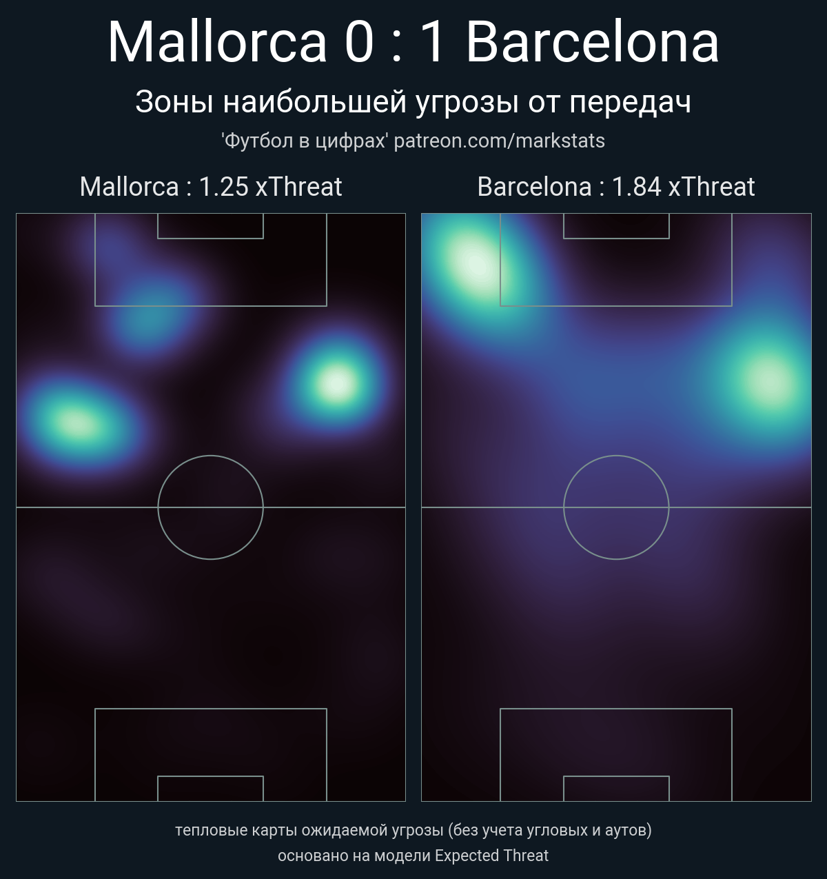 ▪ xThreat без учета угловых: 1.25 - 1.84