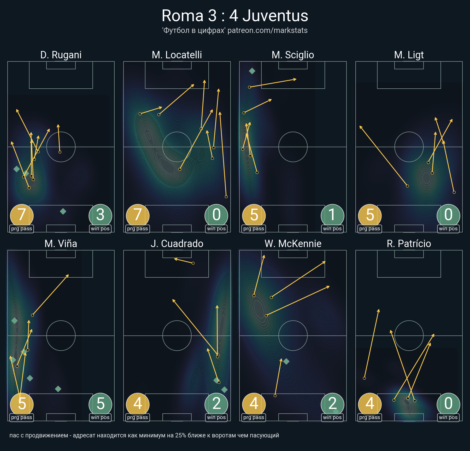 ▪ 25 успешных передач из 31 попыток (1 ассист, 1 под удар, 4 с продвижением, 5 на трети соперника)