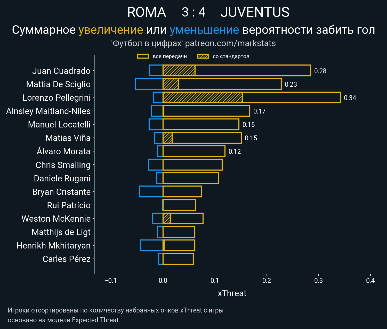 Очки xThreat с игры:
