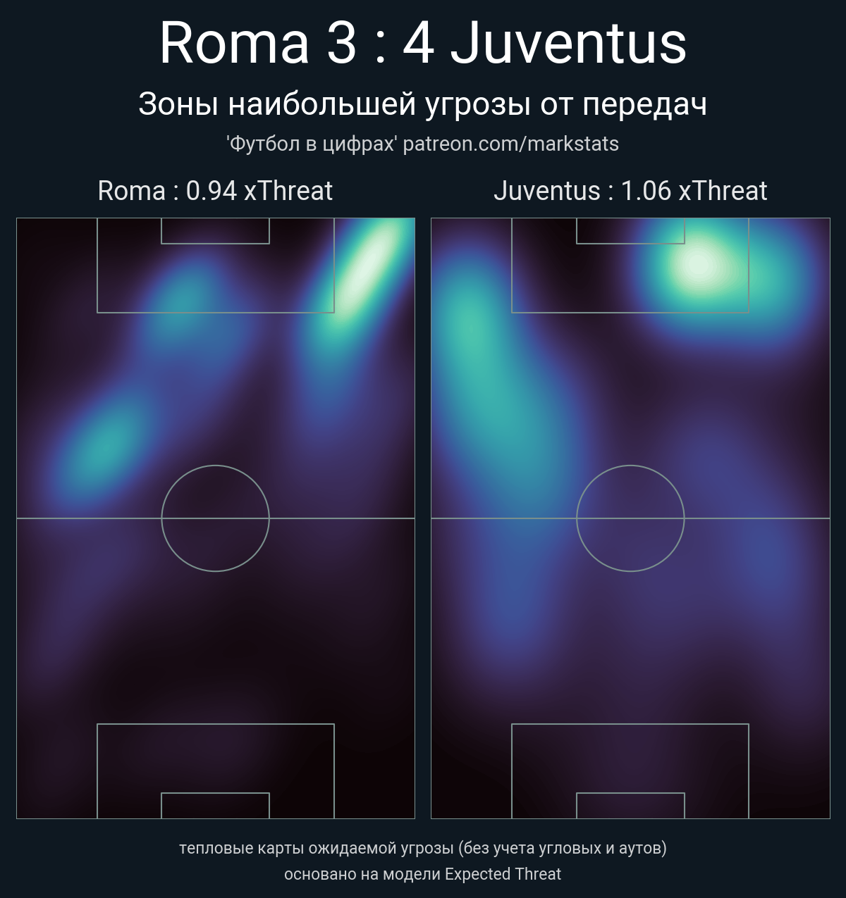 ▪ xThreat без учета угловых: 0.94 - 1.06