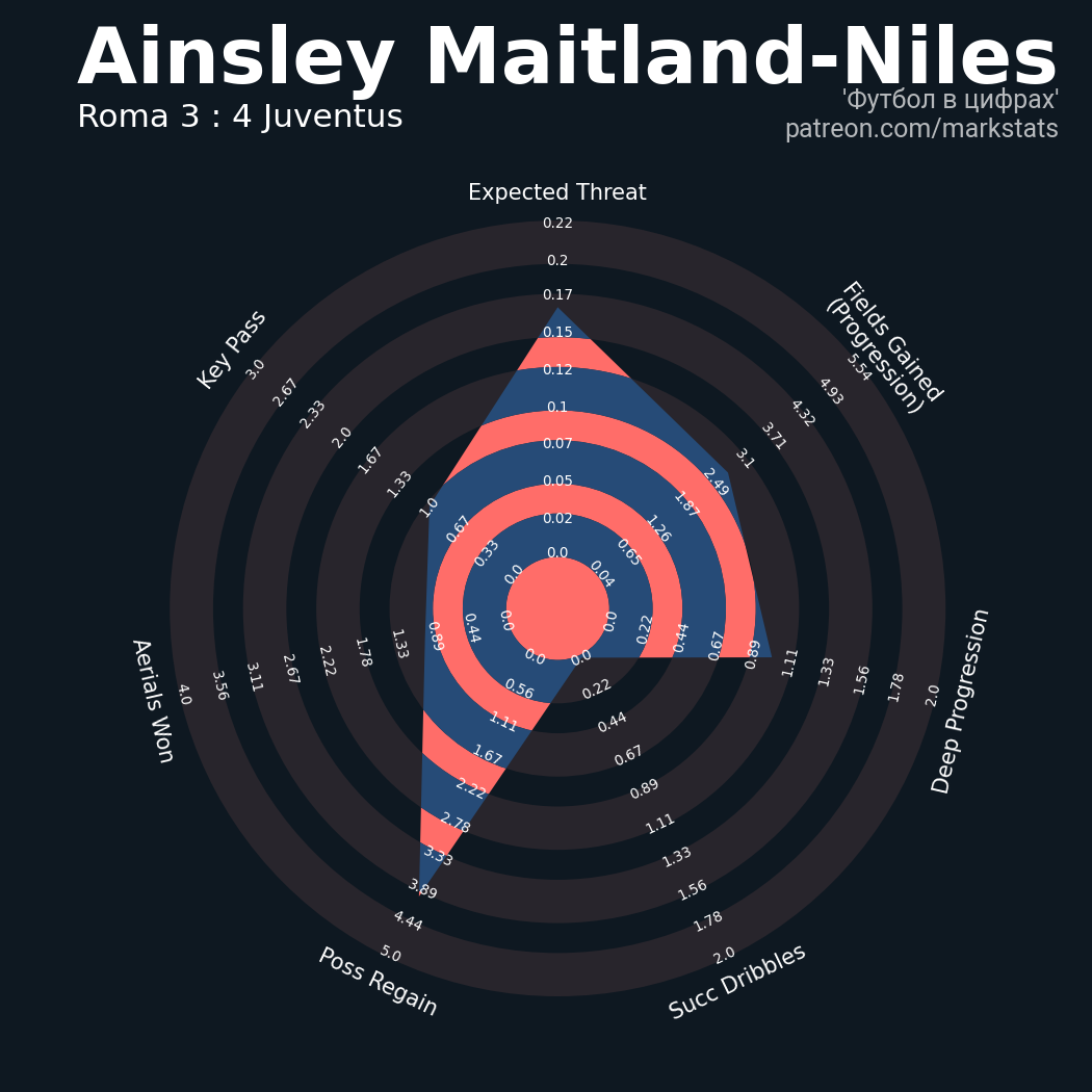 ▪ 44 успешных передач из 55 попыток (1 под удар, 5 с продвижением, 6 на трети соперника)
