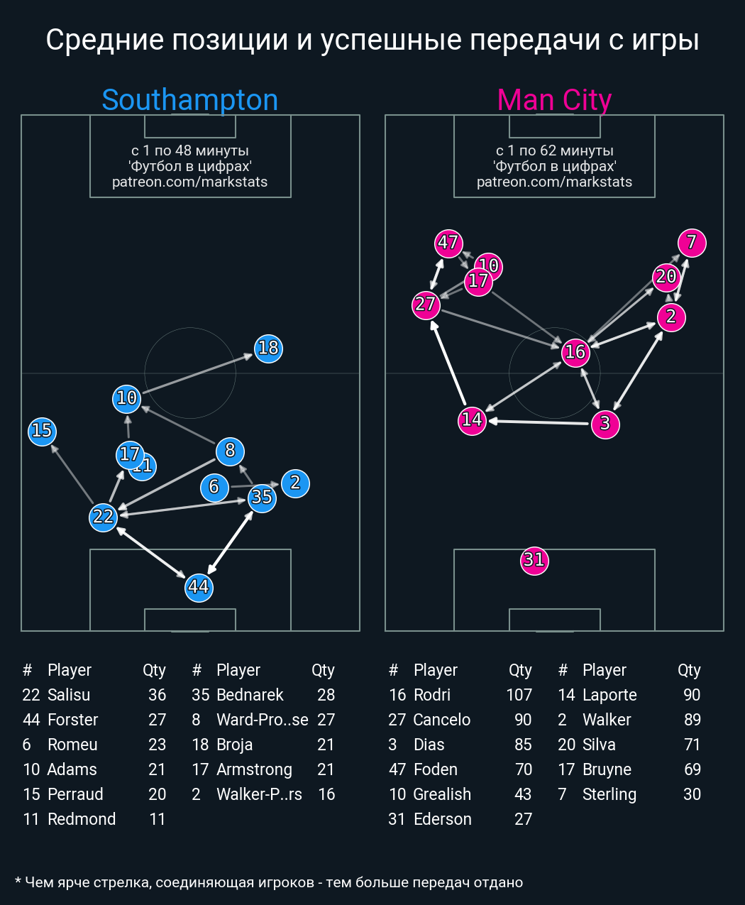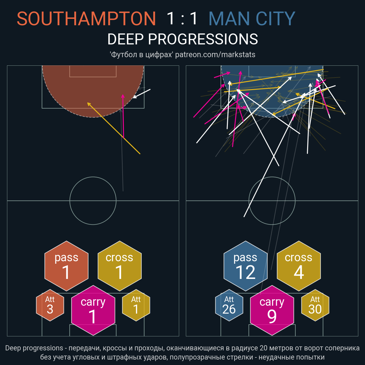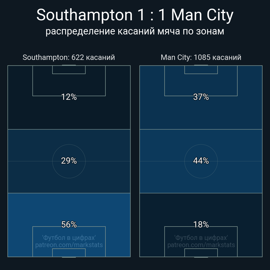 Футбол в цифрахСтатистика матча Southampton - Man City