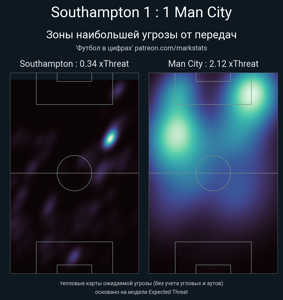 ▪ xThreat без учета угловых: 0.34 - 2.12