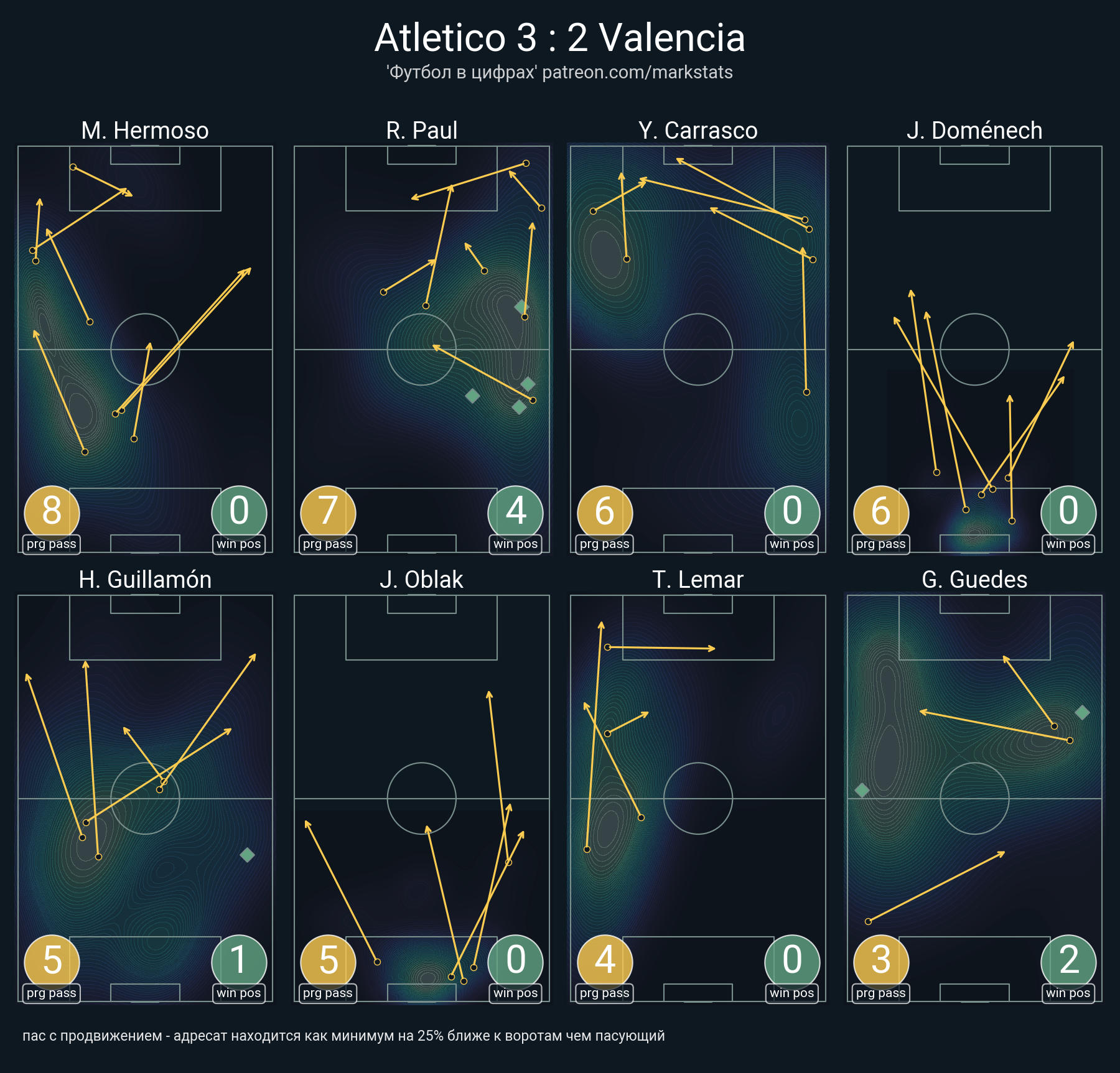▪ 29 успешных передач из 36 попыток (3 с продвижением, 4 на трети соперника)