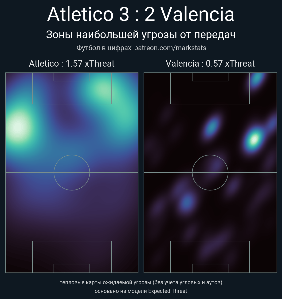 ▪ xThreat без учета угловых: 1.57 - 0.57