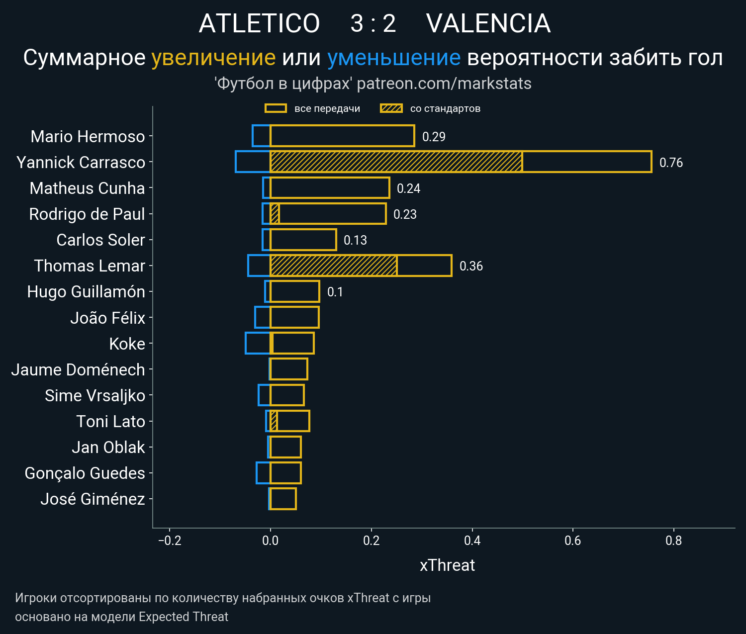 Очки xThreat с игры: