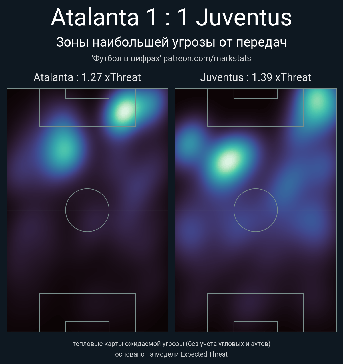 ▪ xThreat без учета угловых: 1.27 - 1.39