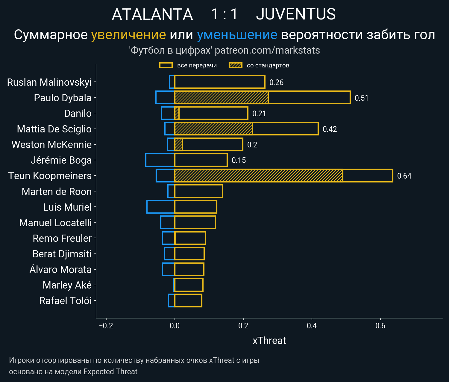 Очки xThreat с игры: