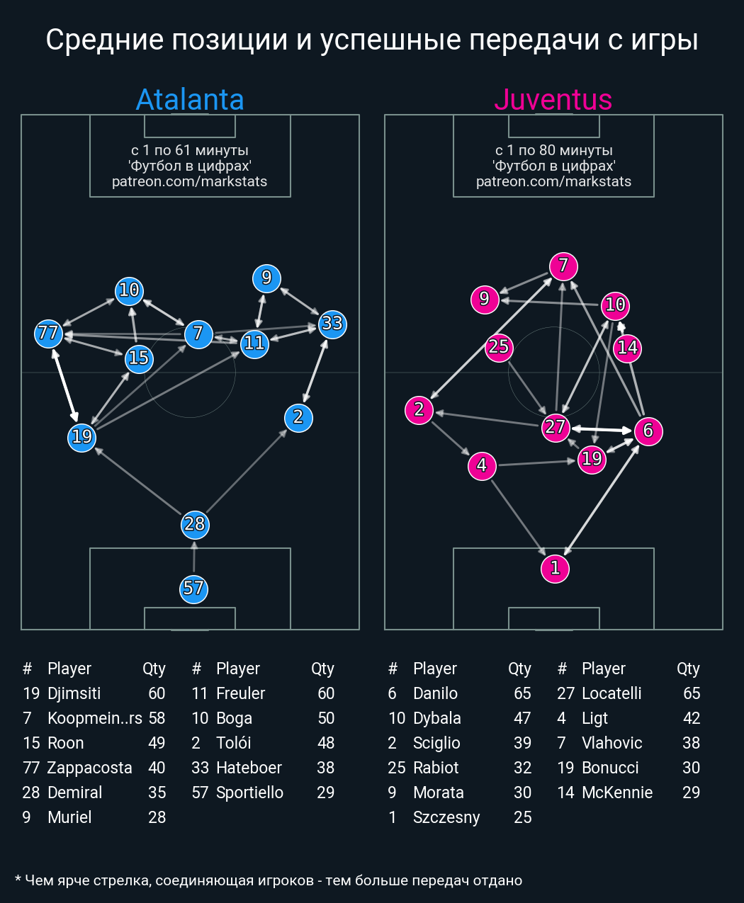 ▪ 62 успешных передач из 72 попыток (1 под удар, 10 с продвижением, 3 на трети соперника)