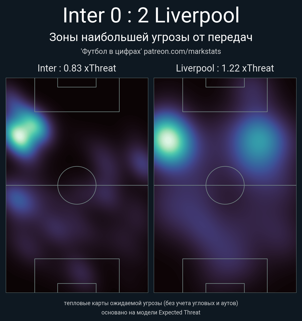 ▪ xThreat без учета угловых: 0.83 - 1.22