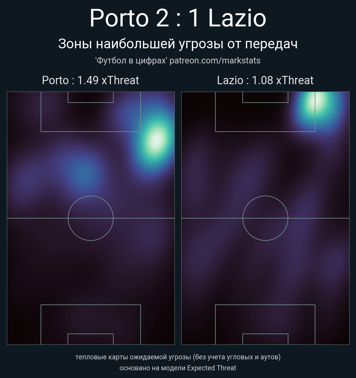 ▪ xThreat без учета угловых: 1.49 - 1.08
