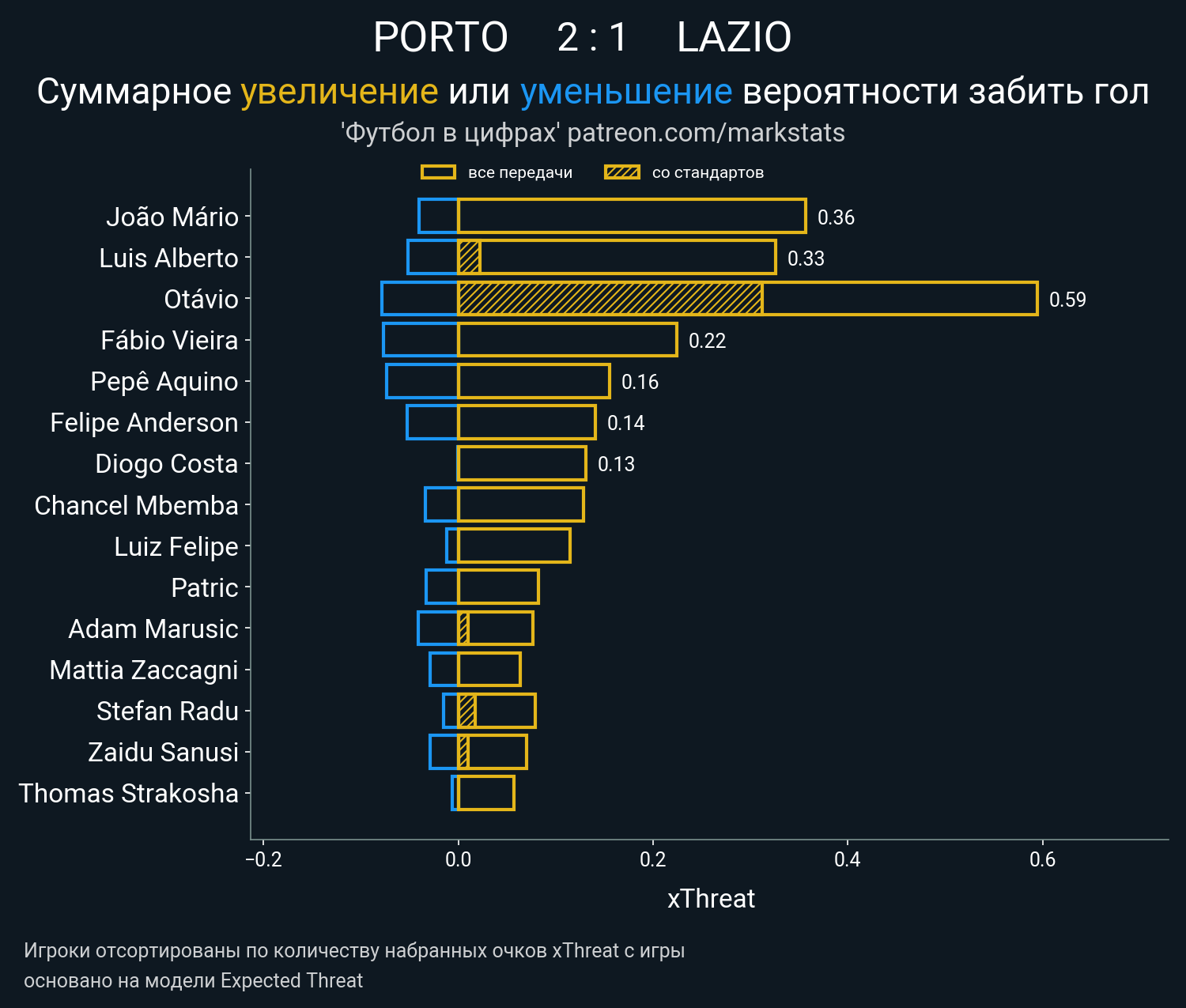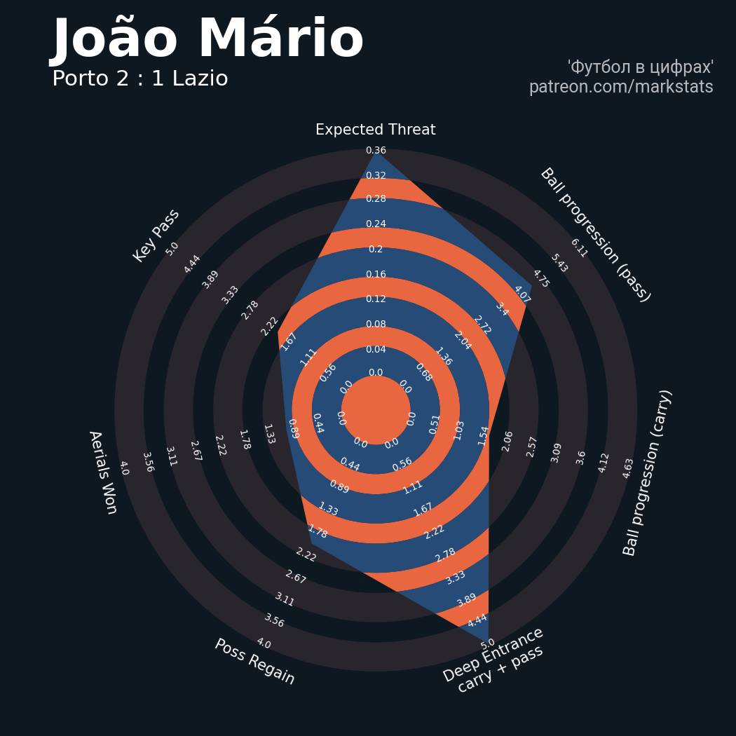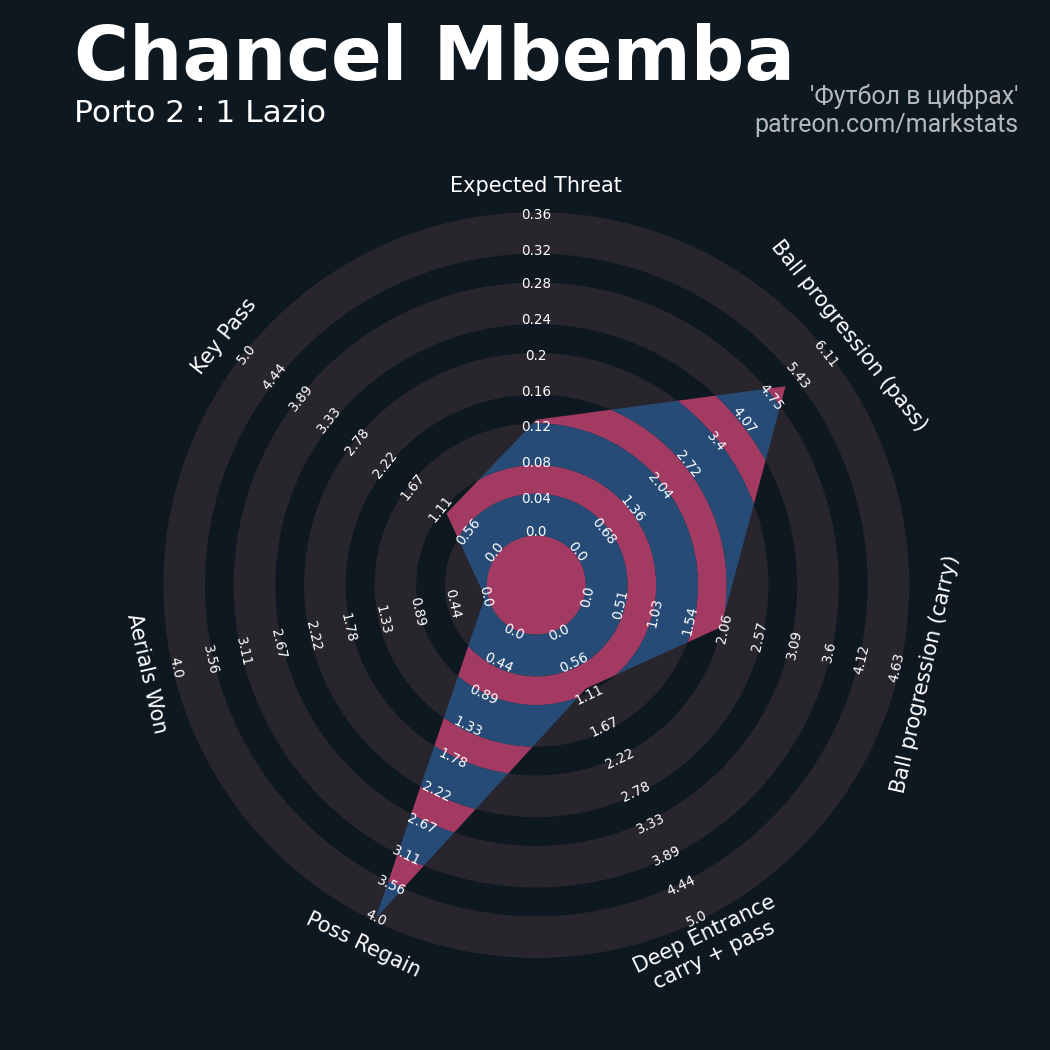 ▪ 0.28 очка xT (+0.31 со стандартов)