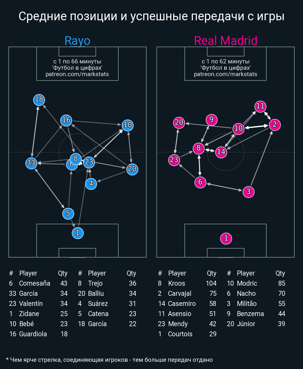 ▪ 103 успешных передач из 111 попыток (2 под удар, 8 с продвижением, 16 на трети соперника)