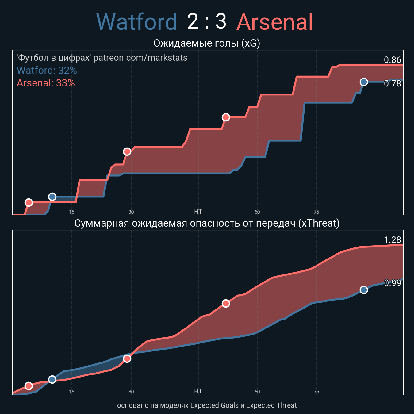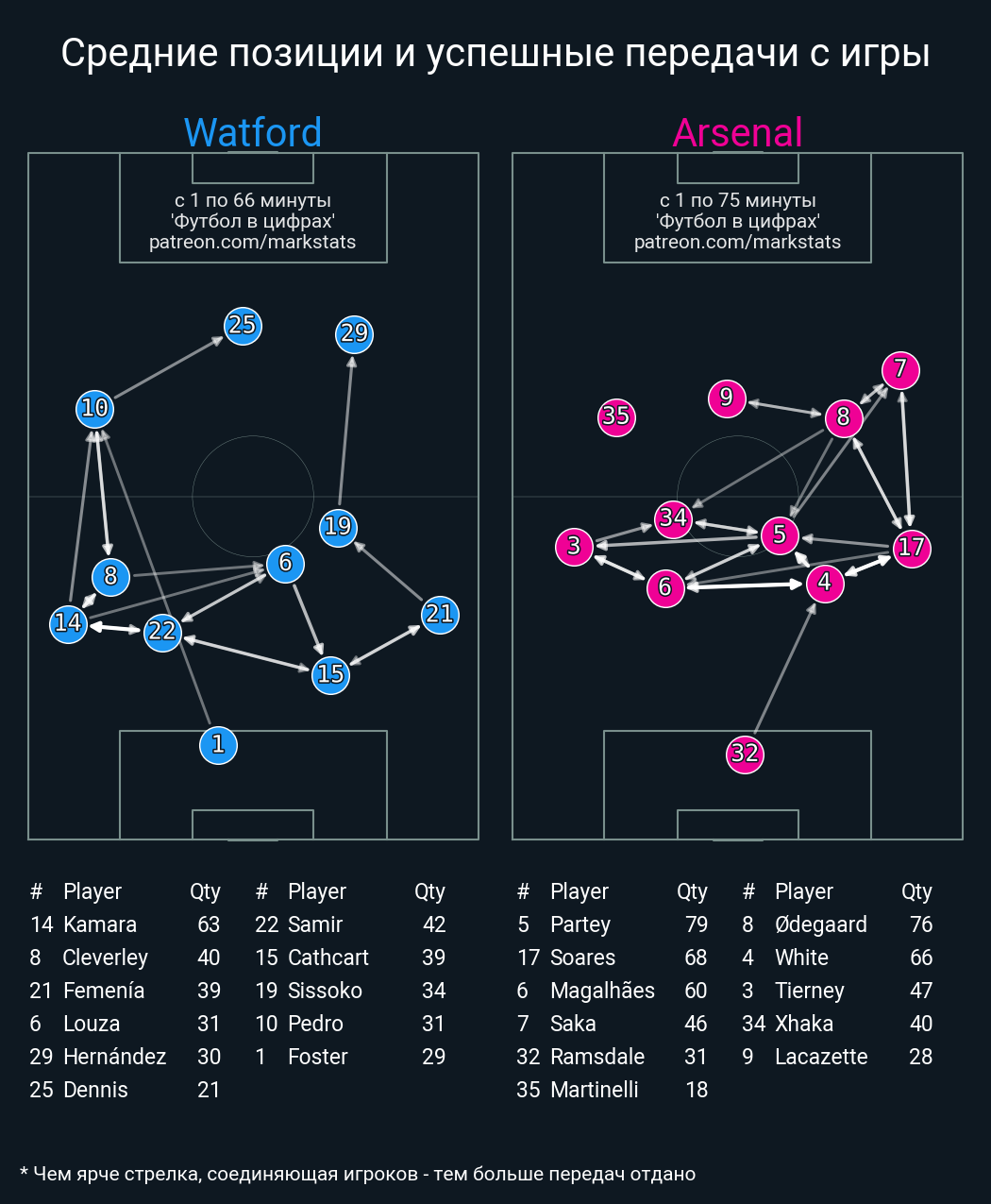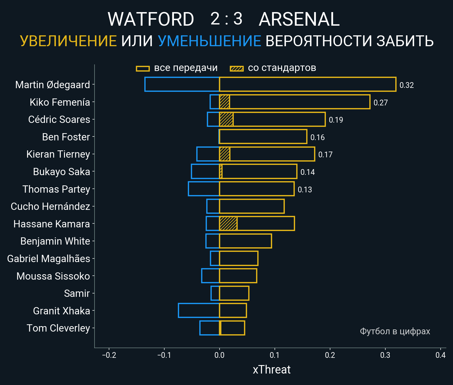 Футбол в цифрахСтатистика матча Watford - Arsenal