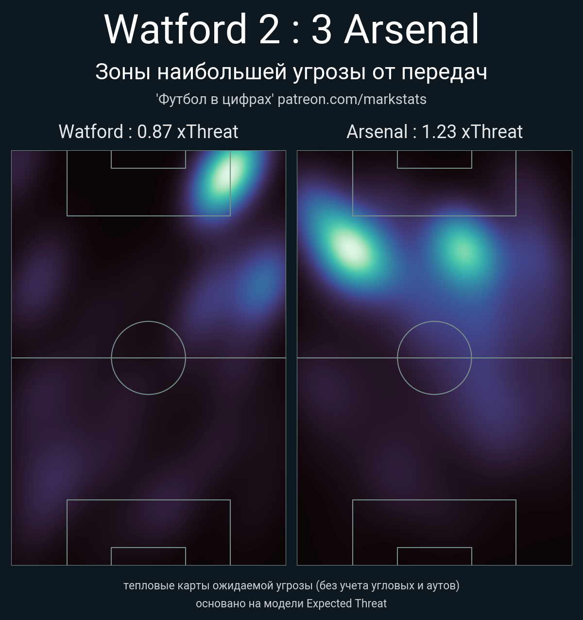 ▪ xThreat без учета угловых: 0.87 - 1.23