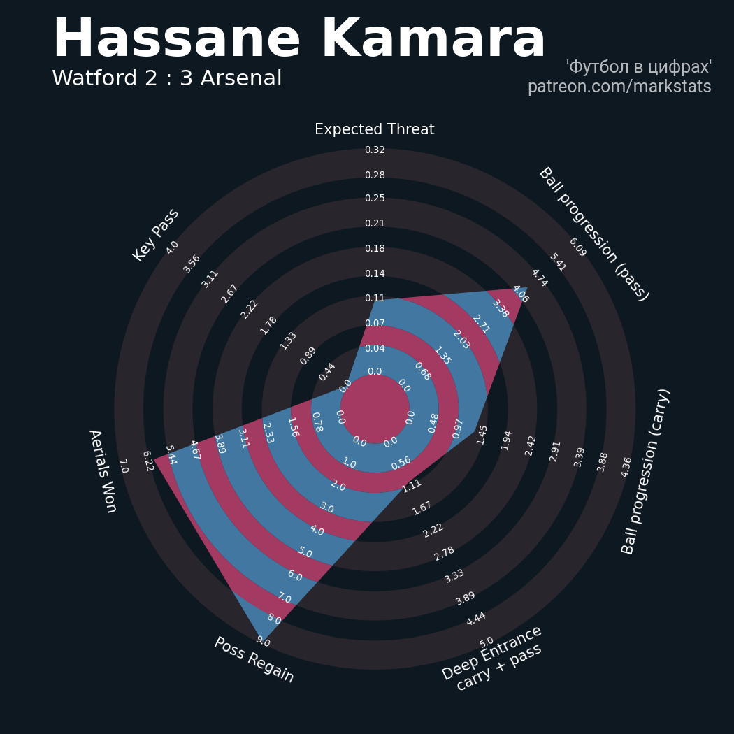 ▪ 60 успешных передач из 77 попыток (1 под удар, 3 с продвижением, 5 на трети соперника)