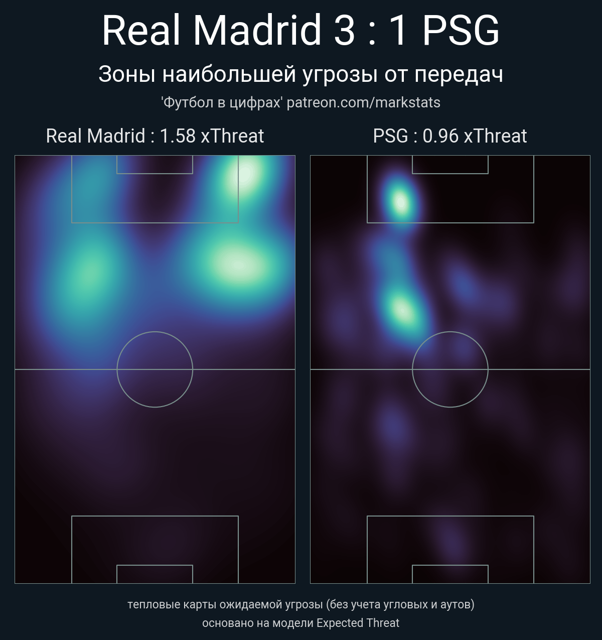 ▪ xThreat без учета угловых: 1.58 - 0.96