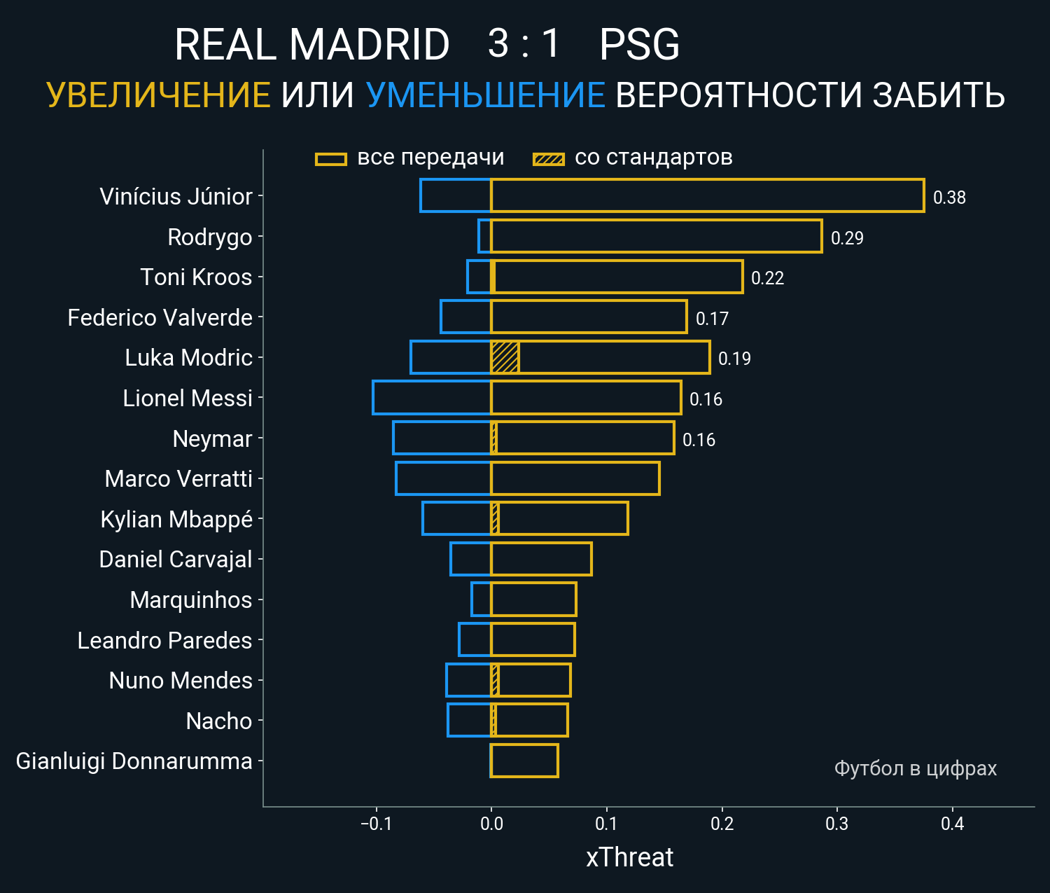▪ 0.15 очка xT (+0.0 со стандартов)